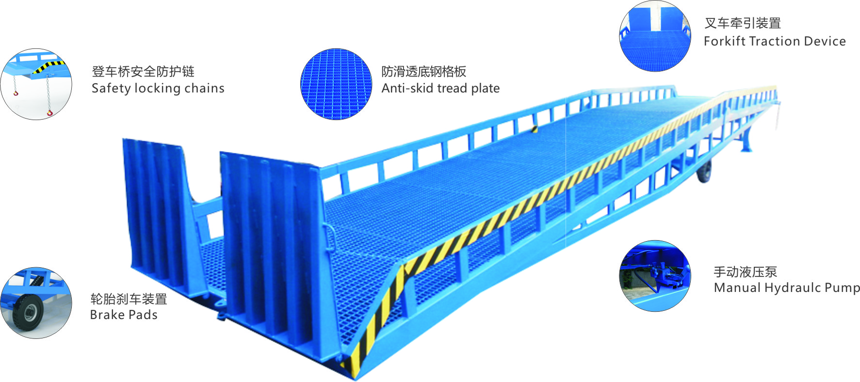 移動(dòng)液壓登車橋是與叉車配合使用的貨物裝卸專用輔助設(shè)備,有了它,叉車能直接從地面進(jìn)入汽車車廂內(nèi)進(jìn)行裝卸貨物的作業(yè)。能夠提高貨物裝卸速度,節(jié)省裝卸工作的時(shí)間以及人力,是您裝卸貨物的得力助手。只需單人操作,不需動(dòng)力電源,即可實(shí)現(xiàn)貨物的安全快速裝卸。移動(dòng)式登車橋用于無(wú)裝卸設(shè)備的貨臺(tái)及流動(dòng)裝卸場(chǎng)所,是與叉車配合使用的貨物裝卸輔助設(shè)備??筛鶕?jù)汽車車廂的高低調(diào)節(jié)高度,叉車可以直接通過(guò)本設(shè)備駛?cè)胲噹麅?nèi)部進(jìn)行貨物的批量裝裝卸。
